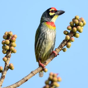 Rotes Spornhuhn, Orangespecht, Kupferschmied, Kleiner Grünschnabelkuckuck, Goldstirnblattvogel, oder der endemische Graukopfbülbül, Frühlingspapageien, Schwarznackenmonal, Weisskehl-Fächerschwanz, oder der Graubauch-Nektarvogel, eine Schlüssel Art der Western Ghats.