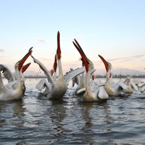 Am nächsten Morgen sind wir am Westufer des Kerkinisees unterwegs. Hier können wir Krauskopf- und Rosapelikane vom Boot aus beobachten und fotografieren. Für die Krauskopfpelikane, die sich schon im Brutkleid präsentieren und bald mit dem Nestbau beginnen, ist der See einer der wichtigsten Brutplätze in Europa. Der See ist zudem Rastgebiet für Kormorane, Taucher (Zwerg-, Schwarzhals-, und Haubentaucher) und Möwen (Lach- und Mittelmeermöwen). Längere Zeit beobachten wir in einer halboffenen Landschaft, die langsam mit Christusdorn, Feldahorn und Eichen zuwächst. Hier halten sich Kernbeißer, Stieglitze, Grün- und Bergfinken, Rot- und Singdrosseln in großer Zahl auf. Die ersten Grauammern, Zilpzalpe und Mönchsgrasmücken fangen zu Singen an. Fast jedes Jahr konnten wir hier Wildkatzen sehen. Den Abend verbringen wir in der Nähe des Dorfes Mandraki, wo auf den weitenläufigen Wiesen Zwergschwäne, Goldregenpfeifer und Kraniche ungestört Nahrung suchen können.