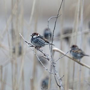 Am Morgen werden wir nicht nur durch die vielen Hähne geweckt, sondern auch von unzähligen Türkentauben, die im Dorf günstige Bedingungen vorfinden. Nach dem Frühstück sind wir zunächst am See unterwegs und suchen nach Zwerggänsen. Die grösste Winterpopulation Europas finden wir in den ausgedehnten Überschwemmungsflächen zwischen dem See und vor dem Deich. Die sehr seltene Zwerggans lässt sich gut durch ihre lebhafte Art von anderen nordischen Gänsearten unterscheiden. Auf der anderen Seite des Deiches, liegt eine kleinteilige Kulturlandschaft, durchzogen von Kanälen und Pappelreihen Es ist ein ideales Gebiet um durchziehende Kleinvögel wie Pieper (Berg-, Baum- und Wiesenpieper), Grauammer und Schwanzmeise zu beobachten. In den Hecken ruft anhaltend der Seidensänger. An den abgestorbenen Baumspitzen halten sich Blut-, Grau- und Kleinspechte auf. An den Kanälen zeigen sich Gebirgsstelzen, Eisvögel und Beutelmeisen.