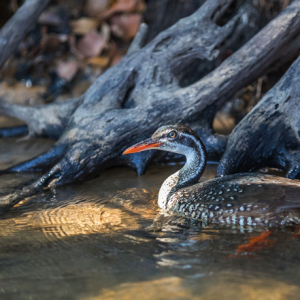 Gute Chancen haben wir für den hübschen Weissrückenreiher. An felsigen Fluss-Abschnitten halten wir nach der attraktiven Halsband-Brachschwalbe Ausschau. Der grossartige Weissstirn, sowie der Zwergspint nisten hier an den sandigen Ufern. Mit etwas Glück finden wir sogar den eher unbekannten Luapulazistensänger und die Bindenfischeule, Highlights dieser Reise.