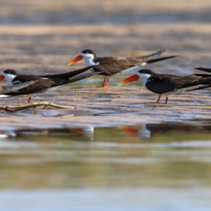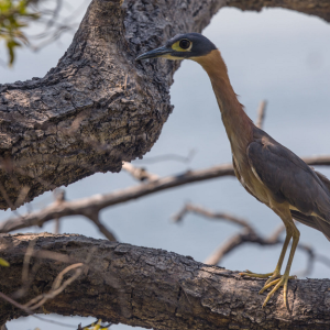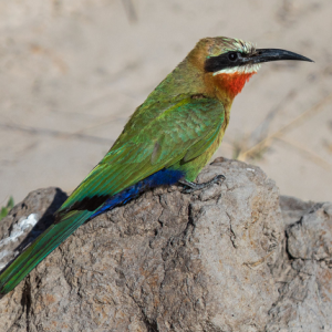 Daneben sind Wassertriel, Langzehen- und Waffenkiebitze oft auf den Sandbänken. Damaraseeschwalben fliegen vorbei. Der Kupferschwanzkuckuck verschwindet rasch wieder im Röhricht. Am Flussufer treffen wir auf den Goliathreiher. Amethystglanzstar, sowie die attraktiven Dreifarben Brillenvanga (Vangawürger), Kobalteisvogel oder Schwalbenschwanzspinte.
