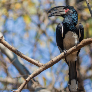 Der Graubürzel Singhabicht wird uns unterwegs beobachten und der Ruf des Streifenliest schallt durch die offenen Wälder. Gelbstirn- und Halsbandbartvogel, der schwarze Kapraupenfänger, Felsentoko, oder die attraktive Rostbauch-Russmeise sind hier zu Hause.
